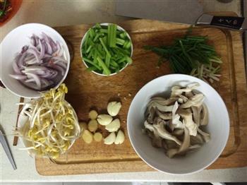 2/8. 蒜、姜片、洋葱、芹菜、平菇、豆芽、小葱、香菜、干辣椒洗净切好备用