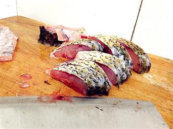 3/19. 处理干净的鱼切下鱼头,将鱼身斩成段,在改切成块